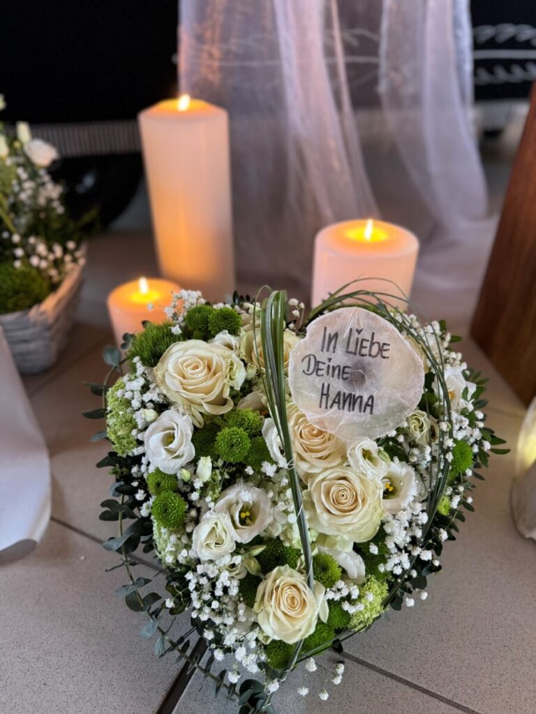 Die Dekoration verleiht der Trauerfeier einen persönlichen Rahmen. Sie schafft eine Atmosphäre, die Trost spendet und die Erinnerung an den verstorbenen Menschen würdevoll unterstreicht.